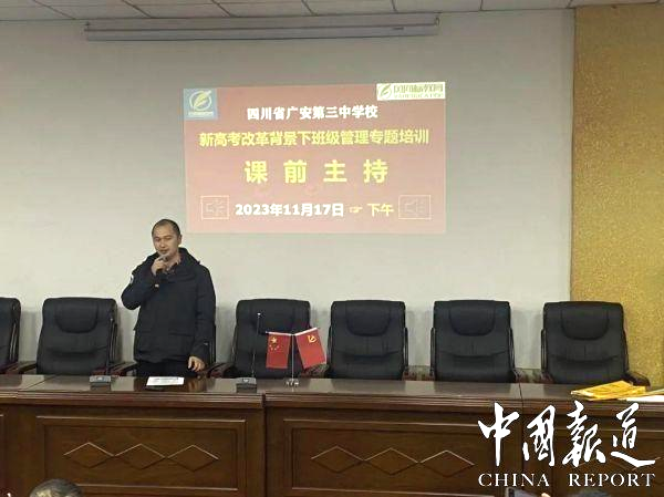 中国报道讯(通讯员 蒋军 杨小寒 秦一源 谢秋月)为提高班主任教育理论素养,树立正确教育观念,提升班主任在教学中组织班级、指导学生、协调工作能力以适应新时期教育发展的需求,近日,四川省广安第三中学校在学术报告厅举办“新高考改革背景下班级管理”专题培训。