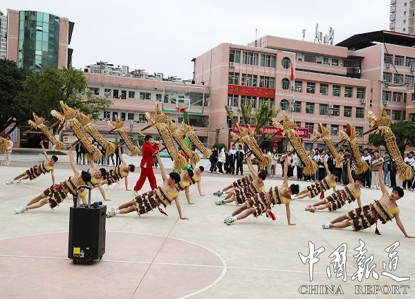 在达县职高本部校区,代表团参观了省级示范专业机电技术应用实训基地的工业机器人、电工电子、PLC等实训室,观看了学校“非遗”项目——板凳龙表演。