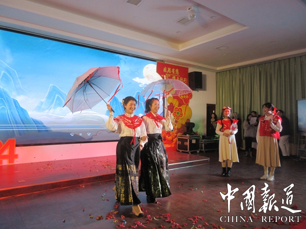 演出前,学校党总支副书记、校长周密代表党政领导班子发表了热情洋溢的致辞,向一年来辛勤工作的全体教职员工致以诚挚的问候和良好的祝愿!周密在致辞中回顾了一年来,学校党总支以高质量党建推动学校高质量发展,在人才培养、教学教研、师资队伍、办学特色等方面取得了优异的成绩。他强调,2024年,全校教职员工要以坚如磐石的信心、只争朝夕的劲头、坚韧不拔的毅力,为学校发展砥砺奋进。