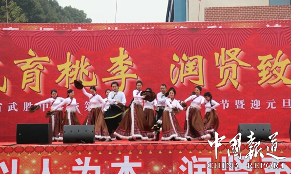 中国报道讯(通讯员 雷莉)为进一步丰富校园文化生活,陶冶学生艺术情操,搭建出彩平台,充分展示学校艺术教育成果,近日,武胜中学“弘文尚武育桃李 润贤致远谱新篇”第三届校园阳光艺术节在第二运动场隆重举行。冬日的寒意丝毫没有影响师生对文艺汇演的热情,全校师生济济一堂,会场内气氛热闹非凡。