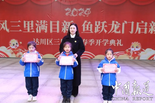 中国报道讯(通讯员 唐军)2月26日,龙年新学期伊始,三里校园,春光漾漾,生机勃发,达州市达川区三里小学隆重举行了“春风三里满目新 鱼跃龙门启新程”开学典礼。