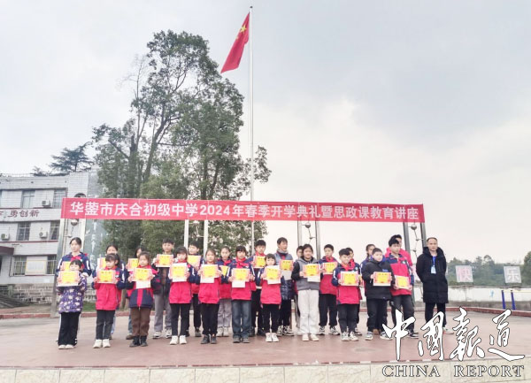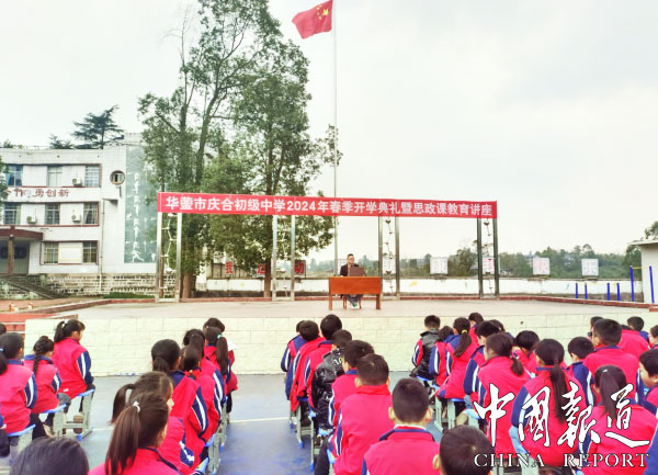 中国报道讯(通讯员 张雪林)春回大地,万物复苏。2月29日下午,华蓥市庆合初级中学举行了2024年春季开学典礼暨思政课教育讲座。全体师生精神饱满、神采飞扬地齐聚操场,共同传递着对新学期的希望。